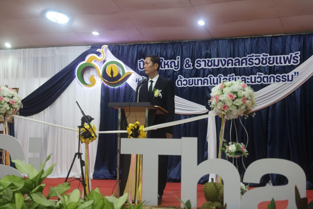 ศาสตราจารย์ ดร.สุวัจน์ ธัญรส อธิการบดีมหาวิทยาลัยเทคโนโลยีราชมงคลศรีวิชัย กล่าวต้อนรับผู้ร่วมงานอย่างเป็นทางการ
