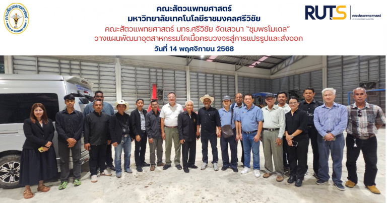 เมื่อวันที่ 14 พฤศจิกายน 2568 ณ โรงแรมนานาบุรี อำเภอเมืองชุมพร จังหวัดชุมพร มหาวิทยาลัยเทคโนโลยีราชมงคลศรีวิชัย ได้จัดพิธีลงนามบันทึกข้อตกลงความเข้าใจ (MOU) ระหว่าง 3 หน่วยงาน คือ ผู้ช่วยศาสตราจารย์ น.สพ.ธีระวิทย์ จันทร์ทิพย์ คณบดีคณะสัตวแพทยศาสตร์ ปฏิบัติราชการแทนอธิการบดี มหาวิทยาลัยเทคโนโลยีราชมงคลศรีวิชัย พร้อมด้วยผู้บริหาร คณาจารย์ และเจ้าหน้าที่คณะสัตวแพทยศาสตร์ คณะผู้บริหารจาก บริษัท ดีแอนด์แซด คอนซัลแทนท์ จำกัด โดย ดร.อดุลย์ กำไลทอง กรรมการผู้จัดการ และคณะตัวแทนจาก วิสาหกิจชุมชนเลี้ยงโคขุนบ้านดอนยาง โดย นายสำเภา มีจันทร์ ประธานวิสาหกิจชุมชน ร่วมลงนามบันทึกข้อตกลงความเข้าใจ โดยมีผู้ทรงคุณวุฒิ และที่ปรึกษาคณะฯ และตัวแทนจากสำนักงานปศุสัตว์จังหวัดชุมพร ร่วมเป็นพยาน โดยเป้าหมายสำคัญ คือ เพื่อยกระดับการผลิตและอุตสาหกรรมโคเนื้อของจังหวัดชุมพรอย่างยั่งยืน ทั้งระดับต้นน้ำ กลางน้ำและปลายน้ำ และเน้นการแปรรูปเพื่อจำหน่ายในตลาดโมเดิร์นเทรดและเพื่อการส่งออก เนื่องจากจังหวัดชุมพรมีต้นทุนที่สำคัญ คือ โรงเชือดและแปรรูปโคเนื้อที่มีกำลังผลิต 200 ตัวต่อวันอยู่แล้ว (ภายใต้ความร่วมมือกับบริษัท D&Z Consultants Co., Ltd และสำนักงานปศุสัตว์จังหวัดชุมพร) โดยที่ประชุมได้สรุปการบูรณาการการทำงานครั้งนี้ว่า “ชุมพรโมเดล”