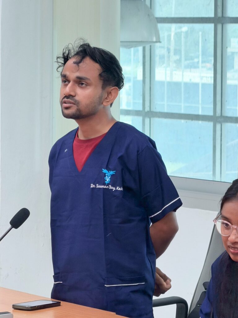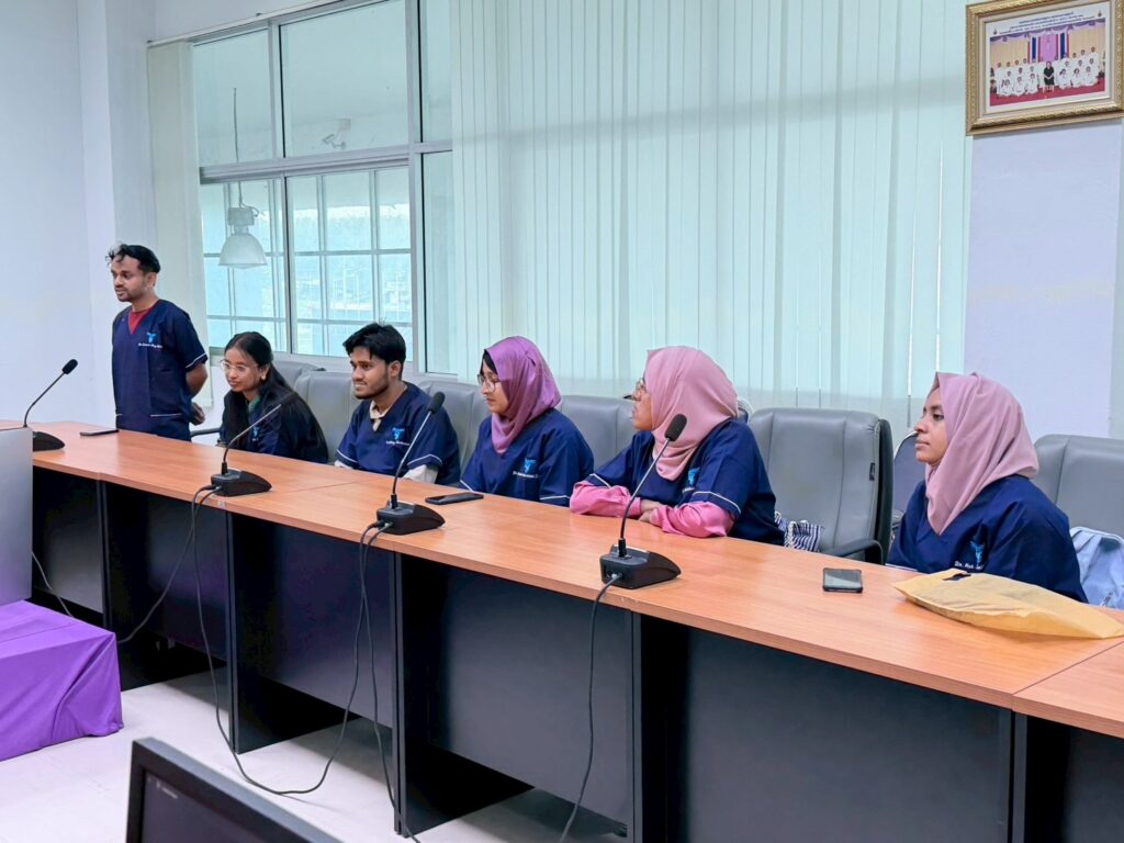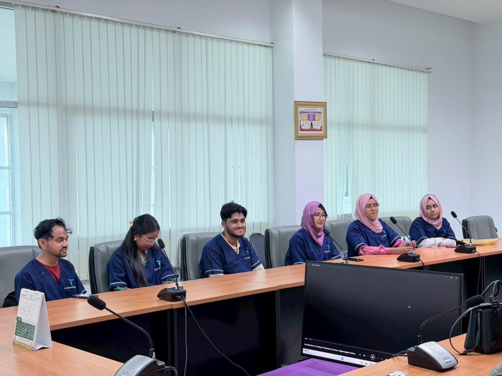 วันที่ 5 มกราคม 2569 ผู้ช่วยศาสตราจารย์ น.สพ.ธีระวิทย์ จันทร์ทิพย์ คณบดีคณะสัตวแพทยศาสตร์ มหาวิทยาลัยเทคโนโลยีราชมงคลศรีวิชัย มอบหมายให้ ผู้ช่วยศาสตราจารย์ สพ.ญ.ดร.วิภาวี แสงสร้อย รองคณบดีฝ่ายบริหารและวางแผน และ อ.สพ.ญ.ซาราห์ นิแอ ผู้ช่วยคณบดีฝ่ายวิเทศสัมพันธ์ ได้ร่วมต้อนรับนักศึกษาแลกเปลี่ยนจาก Animal Science & Veterinary Medicine, Sher-e-Bangla Agricultural University ประเทศบังกลาเทศ จำนวน 6 คน ซึ่งเดินทางมาฝึกประสบการณ์วิชาชีพการสัตวแพทย์ ระหว่างวันที่ 5-16 มกราคม 2569 ณ คณะสัตวแพทยศาสตร์ มหาวิทยาลัยเทคโนโลยีราชมงคลศรีวิชัย