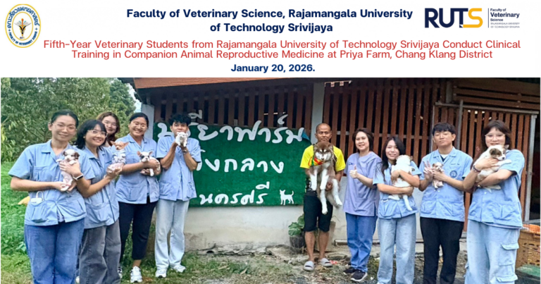 The Faculty of Veterinary Medicine, Rajamangala University of Technology Srivijaya, organized a clinical practice course (Vet Clinic Practice 5) for 6th-year students, providing them with the opportunity to learn and develop veterinary professional skills from November 11 to 29, 2024. The program was divided into three stations: