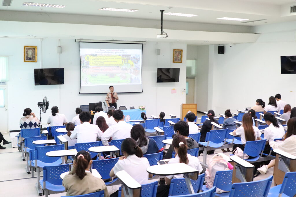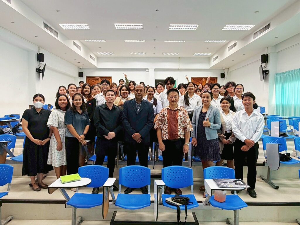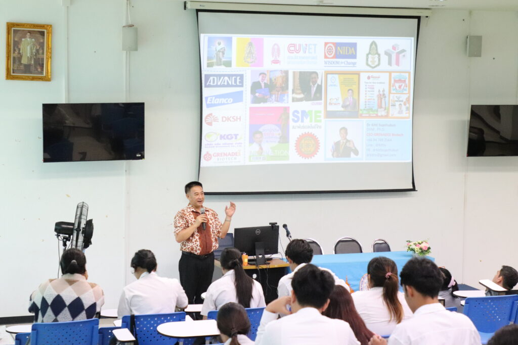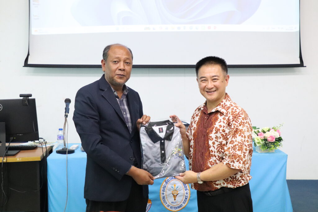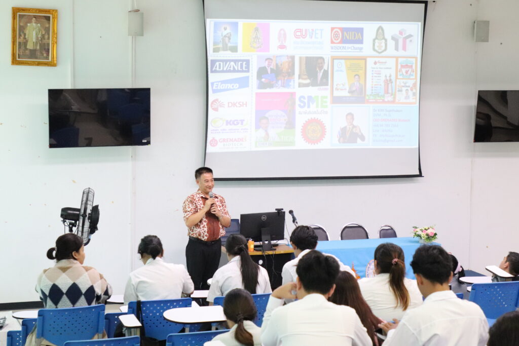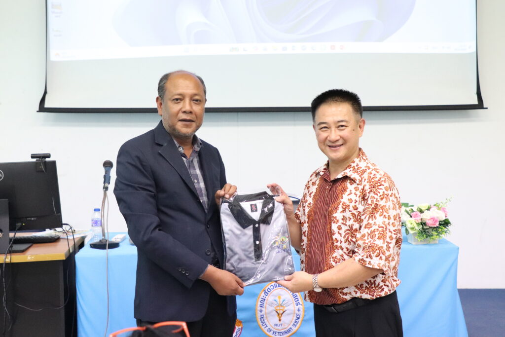 The lecture was honored by Dr. Kitti Supchukun, a member of the Veterinary Council of Thailand, who served as the keynote speaker, sharing his knowledge and professional experiences. The event was held at the Prachip Chupan Conference Room, Small Animal Hospital Building, Faculty of Veterinary Medicine, Rajamangala University of Technology Srivijaya.