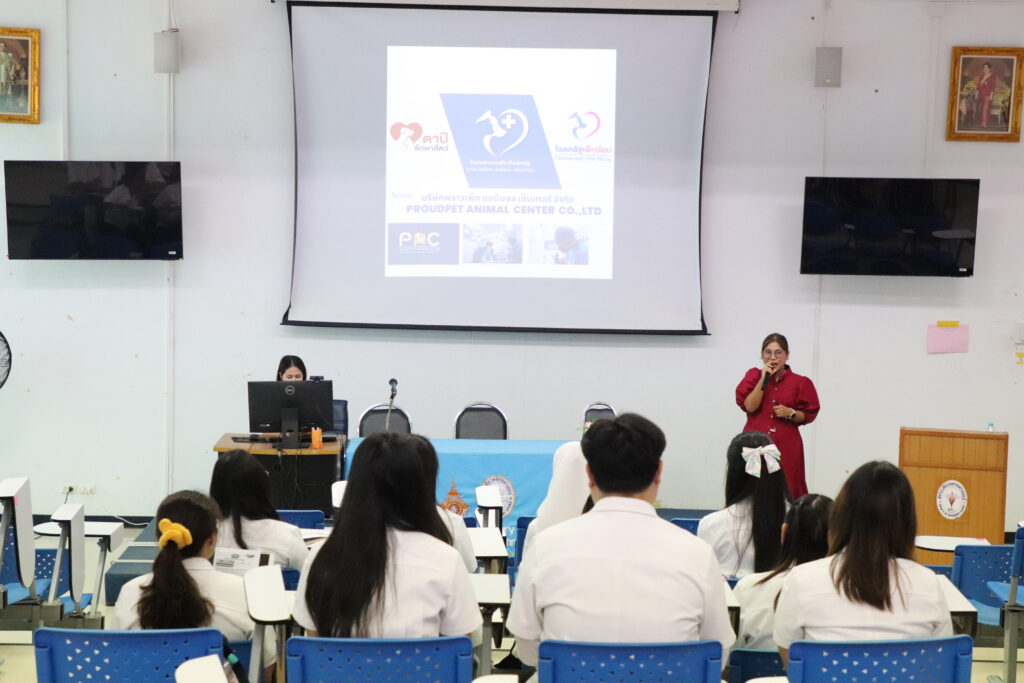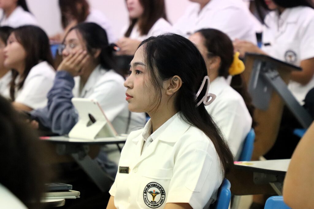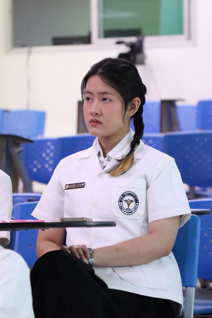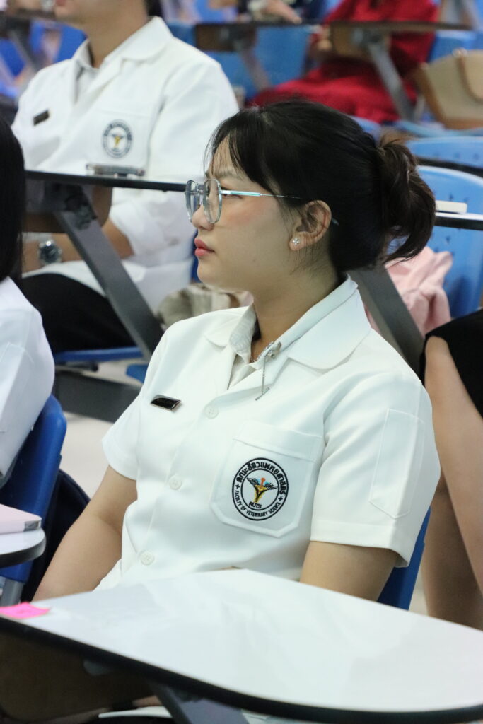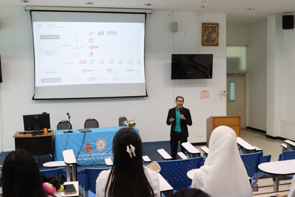 On this occasion, Assistant Professor Dr. Dhiravit Chantip, Dean of the Faculty of Veterinary Medicine, assigned Dr. Mathurot Suwanruengsri, Associate Dean for Student Development, to preside over the opening ceremony. She delivered a welcome address and provided guidance on job application preparation for students.