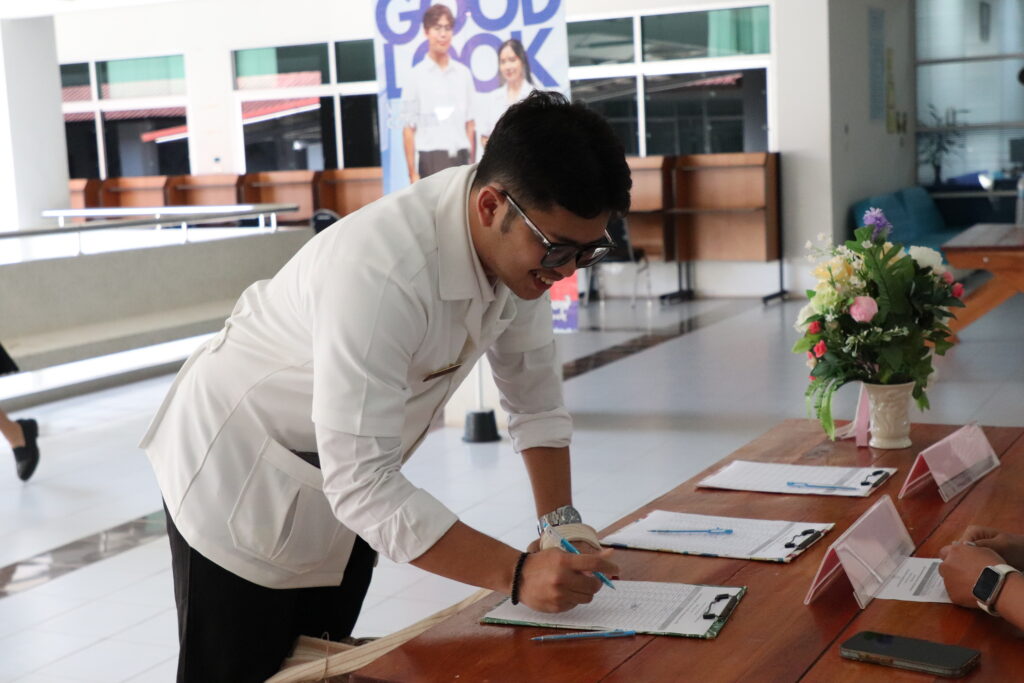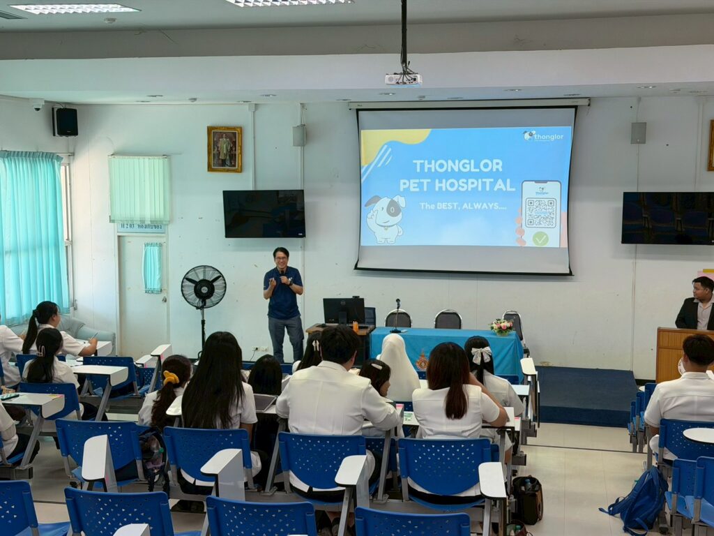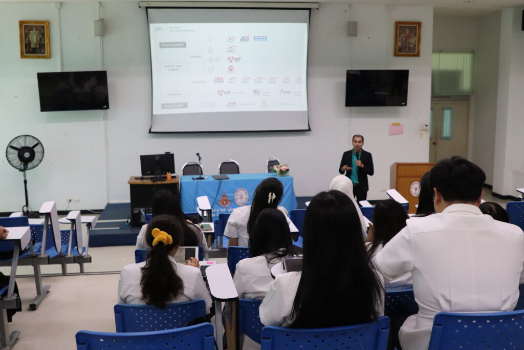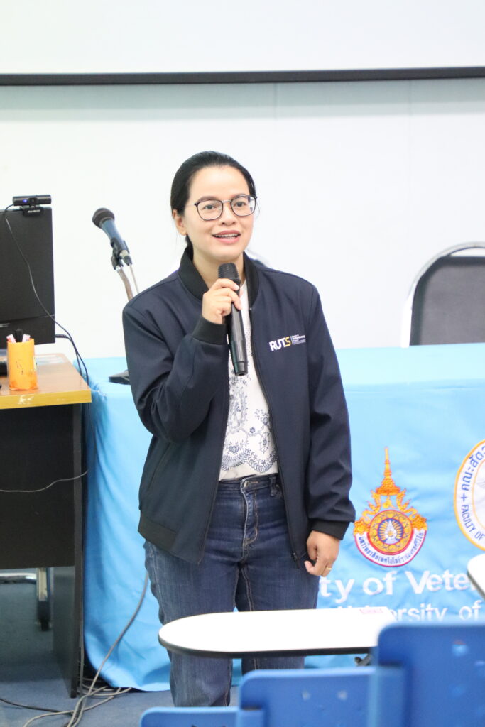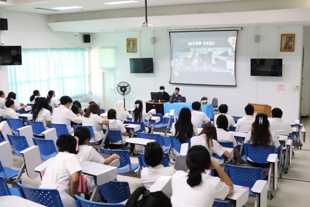 On this occasion, Assistant Professor Dr. Dhiravit Chantip, Dean of the Faculty of Veterinary Medicine, assigned Dr. Mathurot Suwanruengsri, Associate Dean for Student Development, to preside over the opening ceremony. She delivered a welcome address and provided guidance on job application preparation for students.
