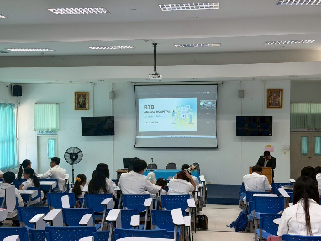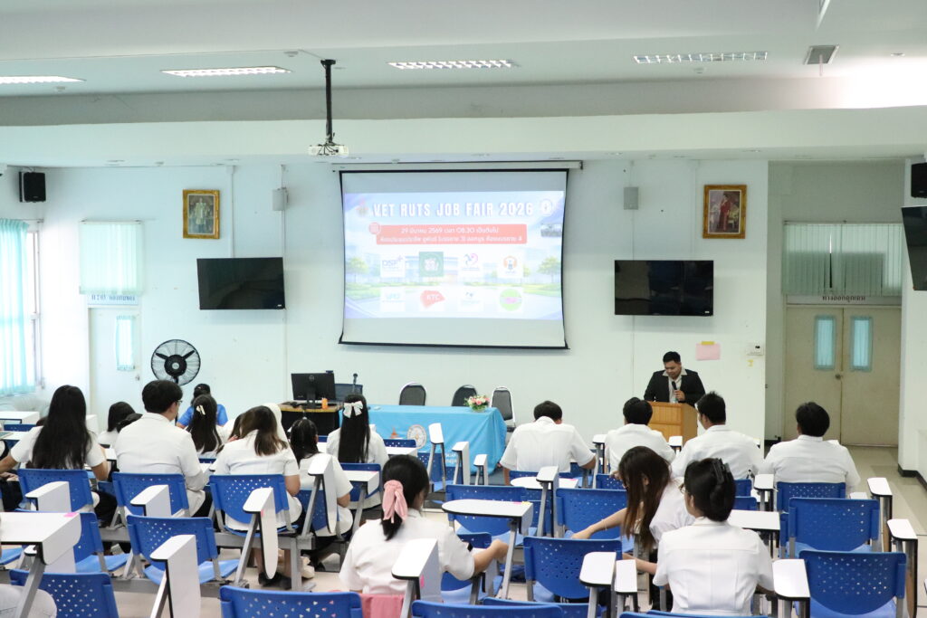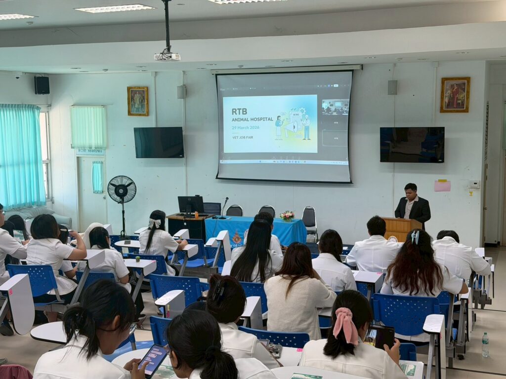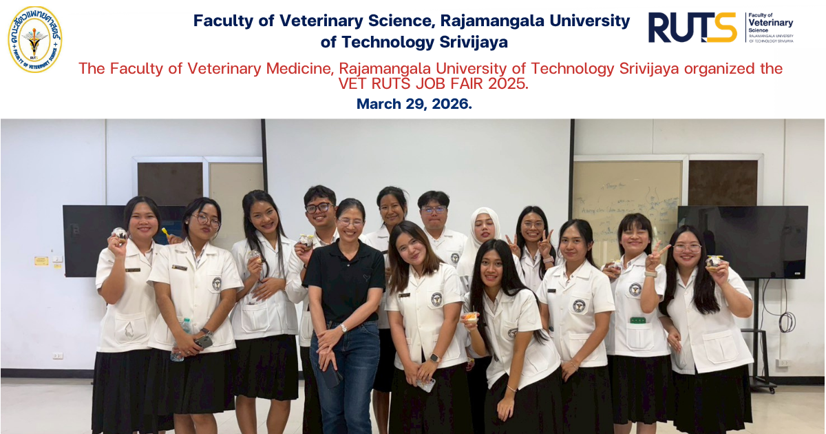 the Faculty of Veterinary Medicine, Rajamangala University of Technology Srivijaya, organized the VET RUTS JOB FAIR 2025 at Pracheep Chuphan Conference Room (Lecture Room 3) and Lecture Room 4, with live streaming via Zoom Meeting. The event aimed to provide students with opportunities to prepare for the job market and to connect with professional organizations.